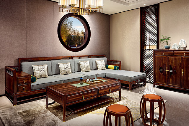 新中式家具家居生活中的家具和器物造型向來(lái)被重視,瓶花、佛頭、茶器、燈具等等都極富于變化。